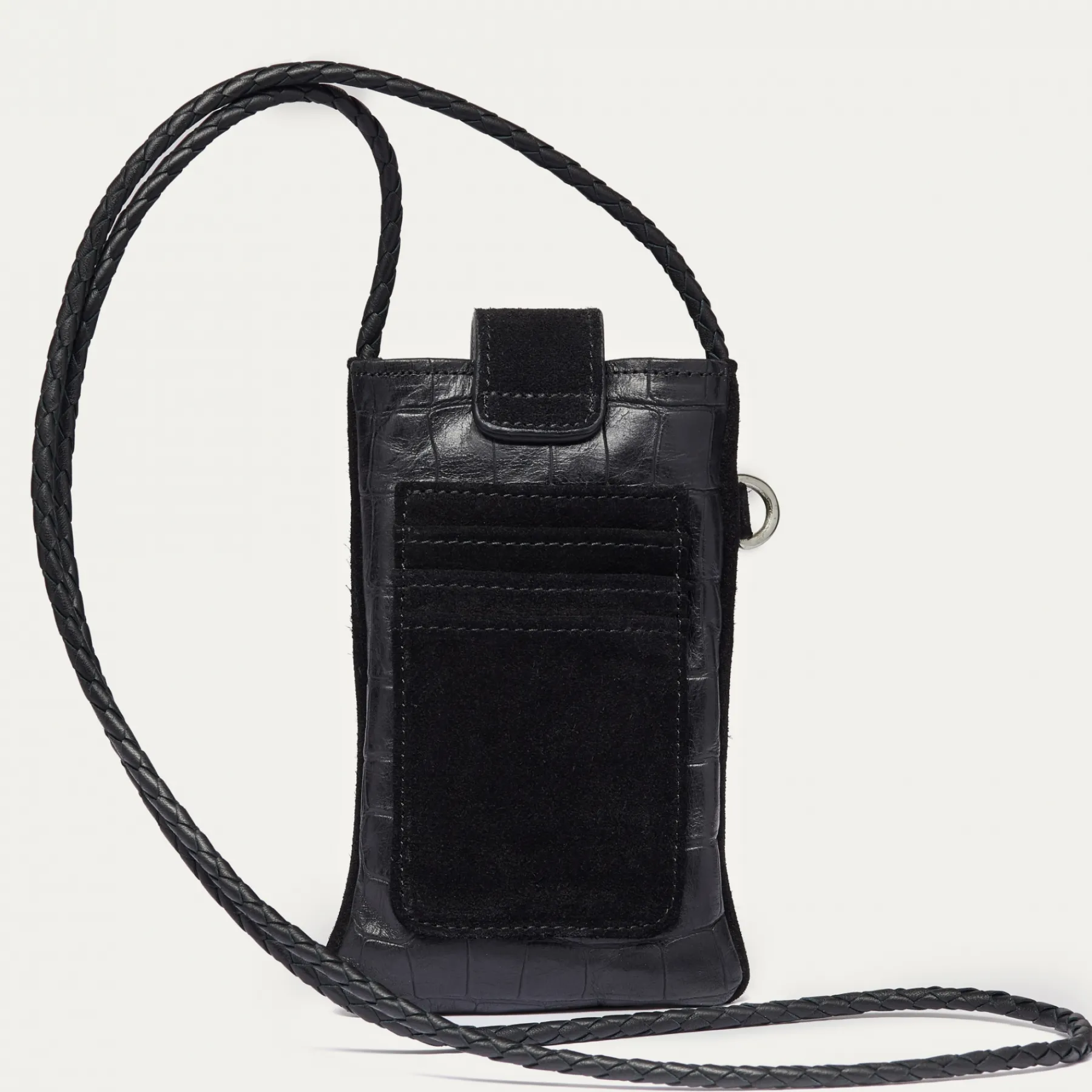 Cette pochette en cuir conçue afin de transporter votre téléphone est réalisée à la main. Le double Marcus est dot…