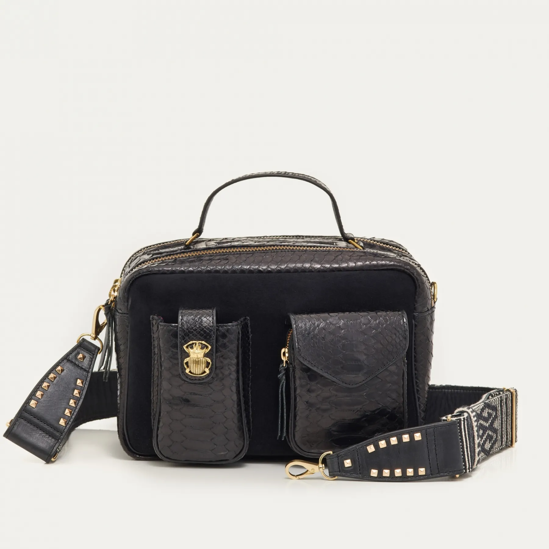 | Colour | Python et cuir suédé noir |