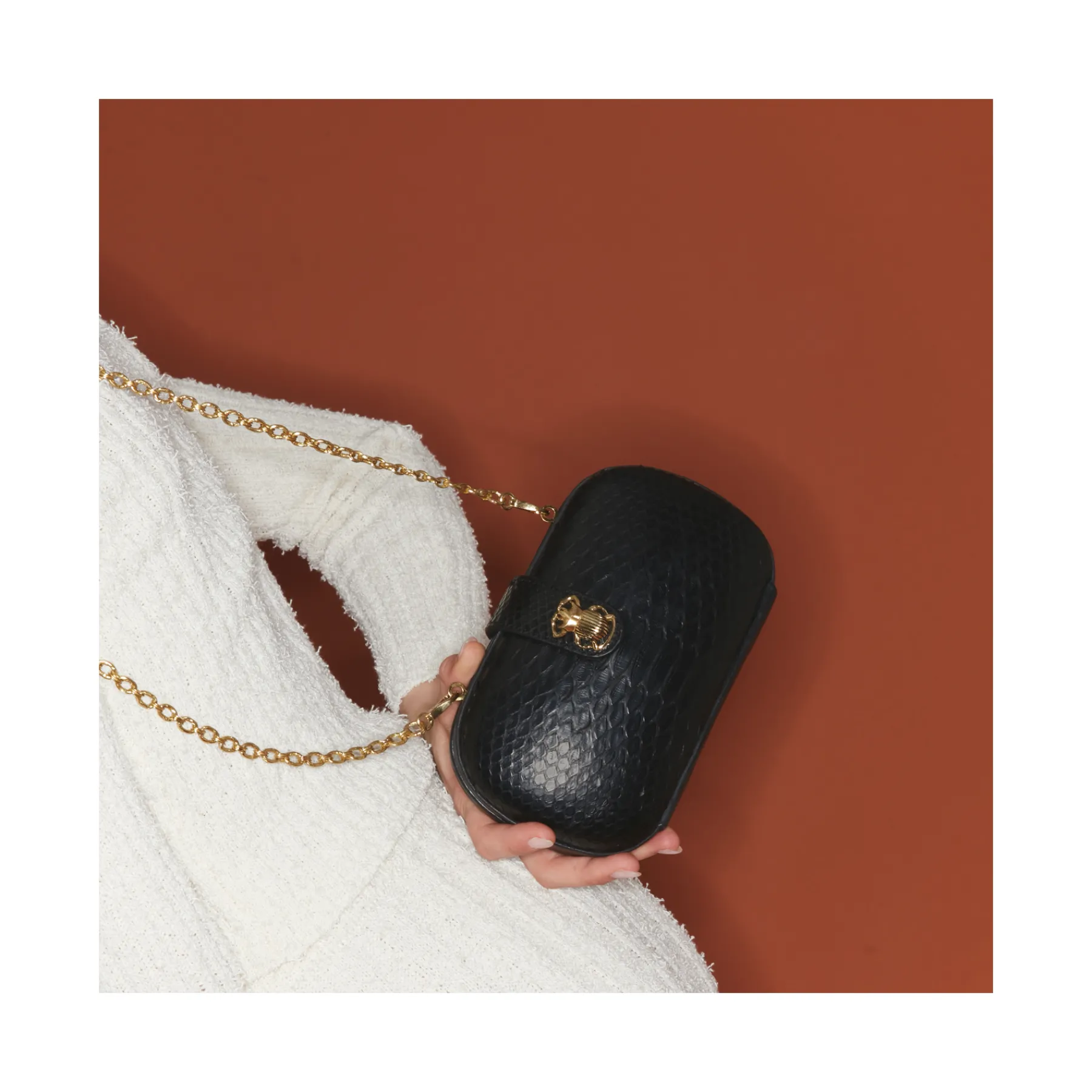 Notre mini sac Chiara est idéal pour accompagner vos soirées. Cette minaudière aux lignes douces et élégantes peut être portée main ou avec sa chaîne et il est doté d’un fermoir bijou ainsi que d’une chaîne artisanale. Il est organisé en un seul compartiment et s’adaptera en fonction de vos envies et saura discrètement habiller votre tenue pour toutes les occasions.