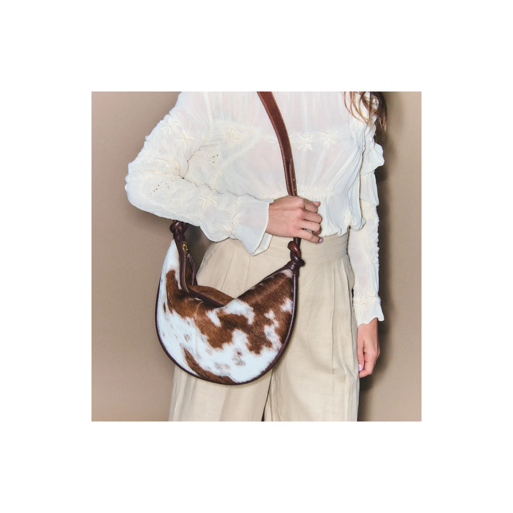 Notre nouveau sac demi-lune Chris est composé de vachette.