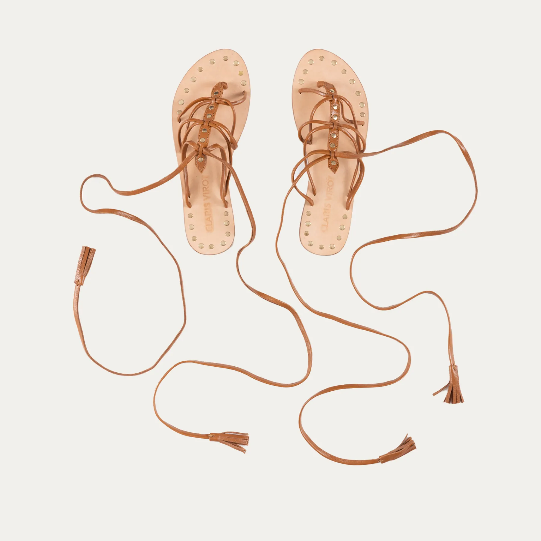 Nos spartiates en python à lanières Marine sont ornées de petits clous dorés et argentés à l’avant de la chaussure…