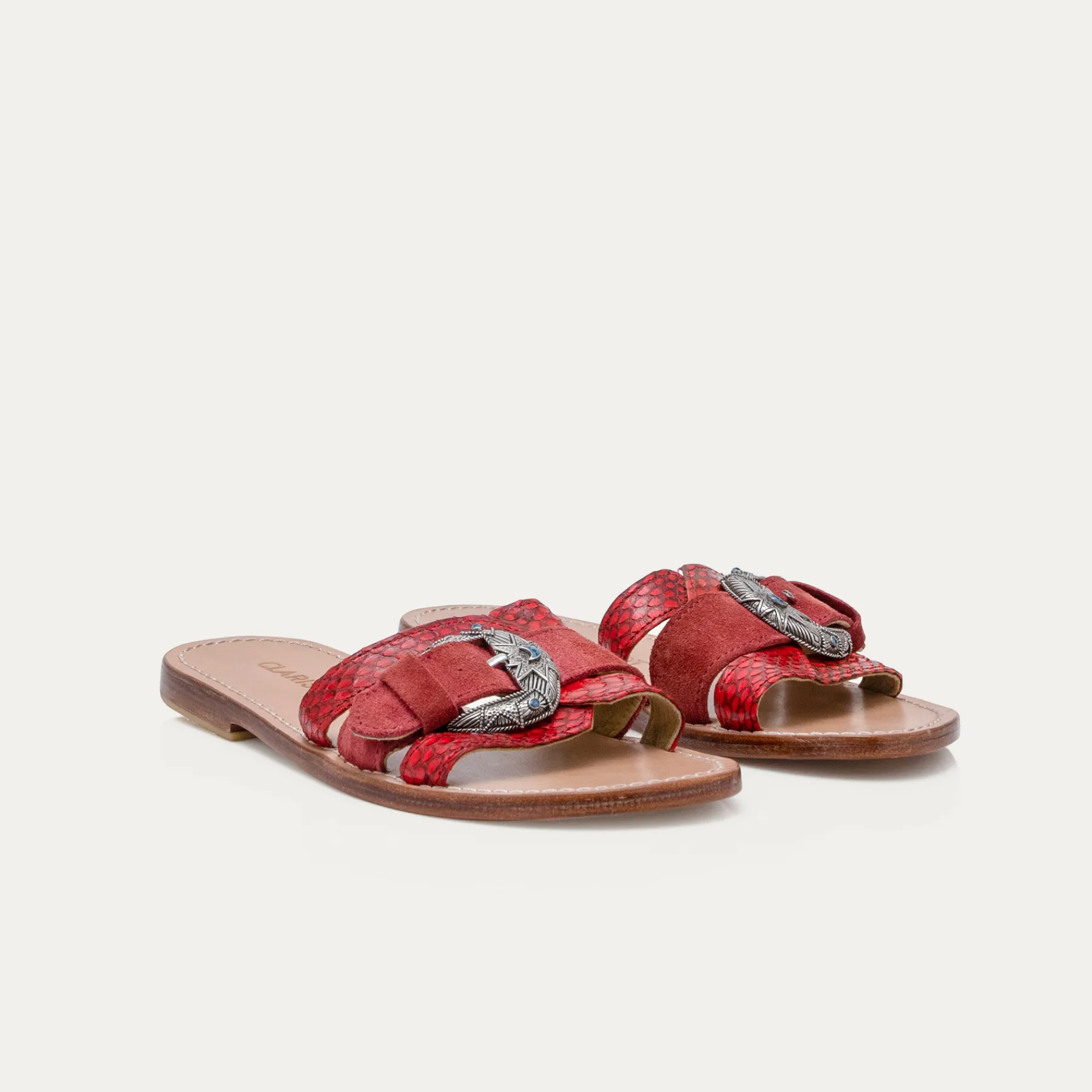 Nos sandales en cuirs ornées de deux boucles apportent style et simplicité. Idéales en toute occasion, elles se portent facilement et vont devenir vos indispensables de ceLe saison.